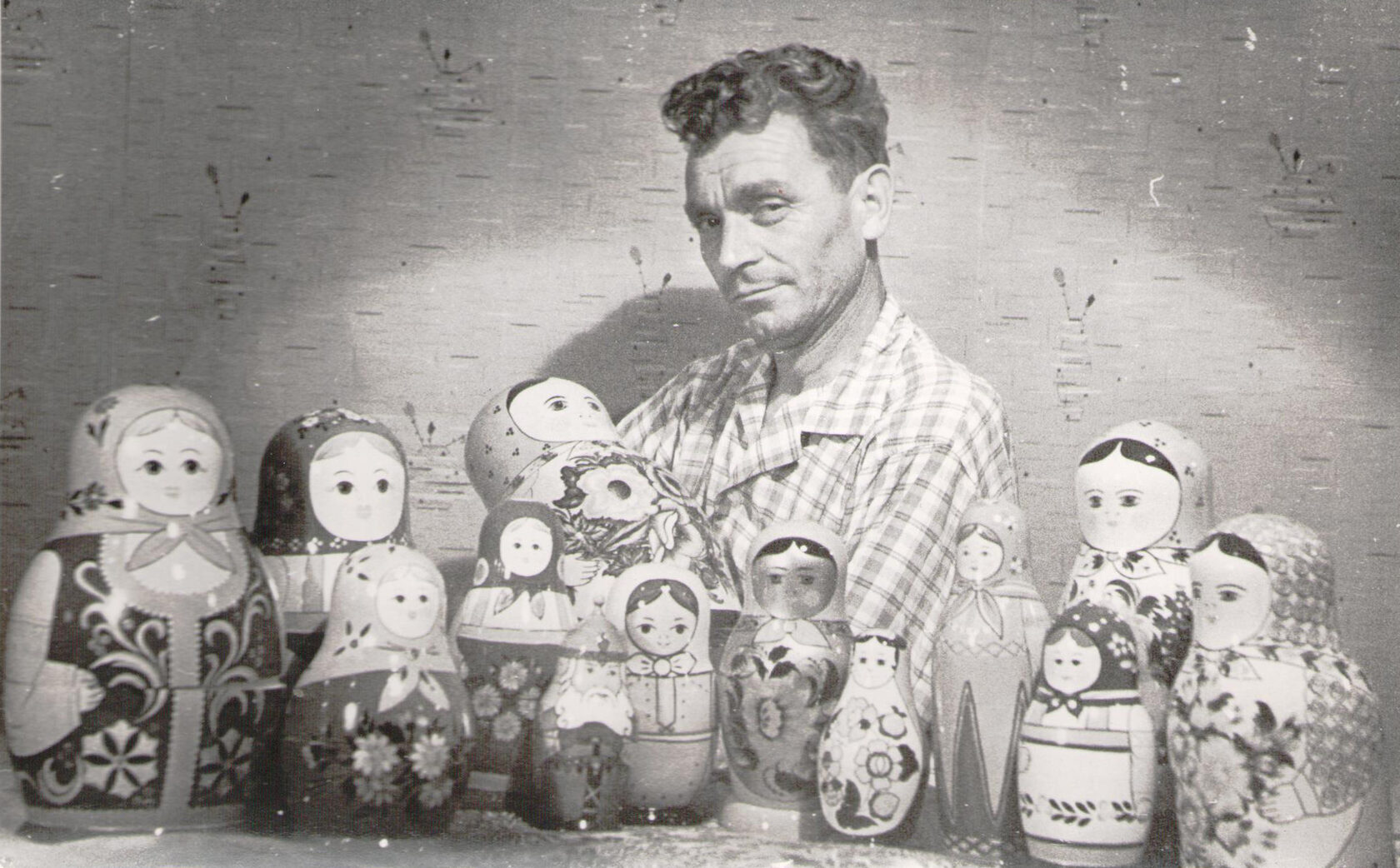 Будущий художник Роман Иванович Пчелкин родился аккурат в год рождения семёновской матрёшки: сто лет назад в деревне Мошна Семёновского района, в большой семье председателя колхоза. Возможно, это отчасти повлияло и на его судьбу. Девятнадцатилетним парнем был призван на фронт. Прошел всю войну, получил звание лейтенанта, был награжден орденом Красной Звезды, орденом Отечественной войны I степени. В 1943 году лишился левой руки и был демобилизован.